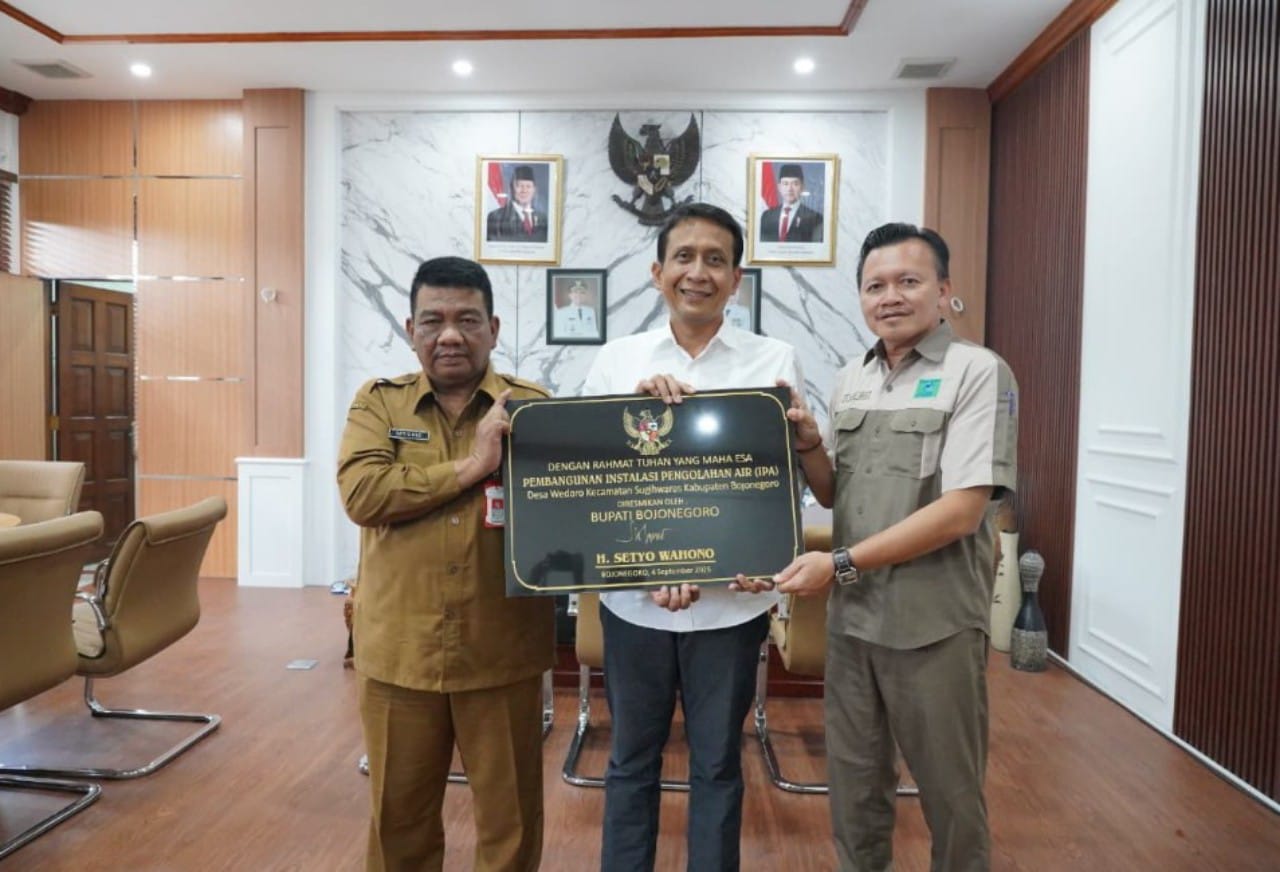 BOJONEGORO,Wartagres.com – Bupati Bojonegoro, Setyo Wahono, meresmikan Instalasi Pengolahan Air (IPA) Wedoro dan menyaksikan penandatanganan Memorandum of Understanding (MoU) antara Dinas Perumahan, Kawasan Permukiman, dan Cipta Karya (PKPCK) dengan Perusahaan Daerah Air Minum (PDAM) Bojonegoro terkait operasional Instalasi Pengolahan Air (IPA) Wedoro Intake Waduk Gongseng kepada PDAM Bojonegoro, Selasa 9 September 2025.