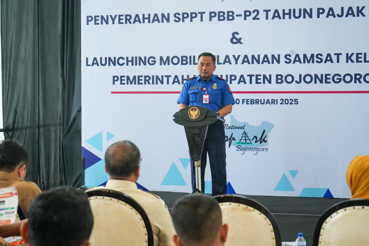BOJONEGORO,Wartagres.com – Pj. Bupati Bojonegoro menyerahkan SPPT PBB-P2 Tahun Pajak 2025 dan Melaunching Mobil Pelayanan Samsat Keliling Pemkab Bojonegoro. Acara dilaksanakan di Gedung Pemkab Lt.2 pada Senin pagi (10/02/2025).
