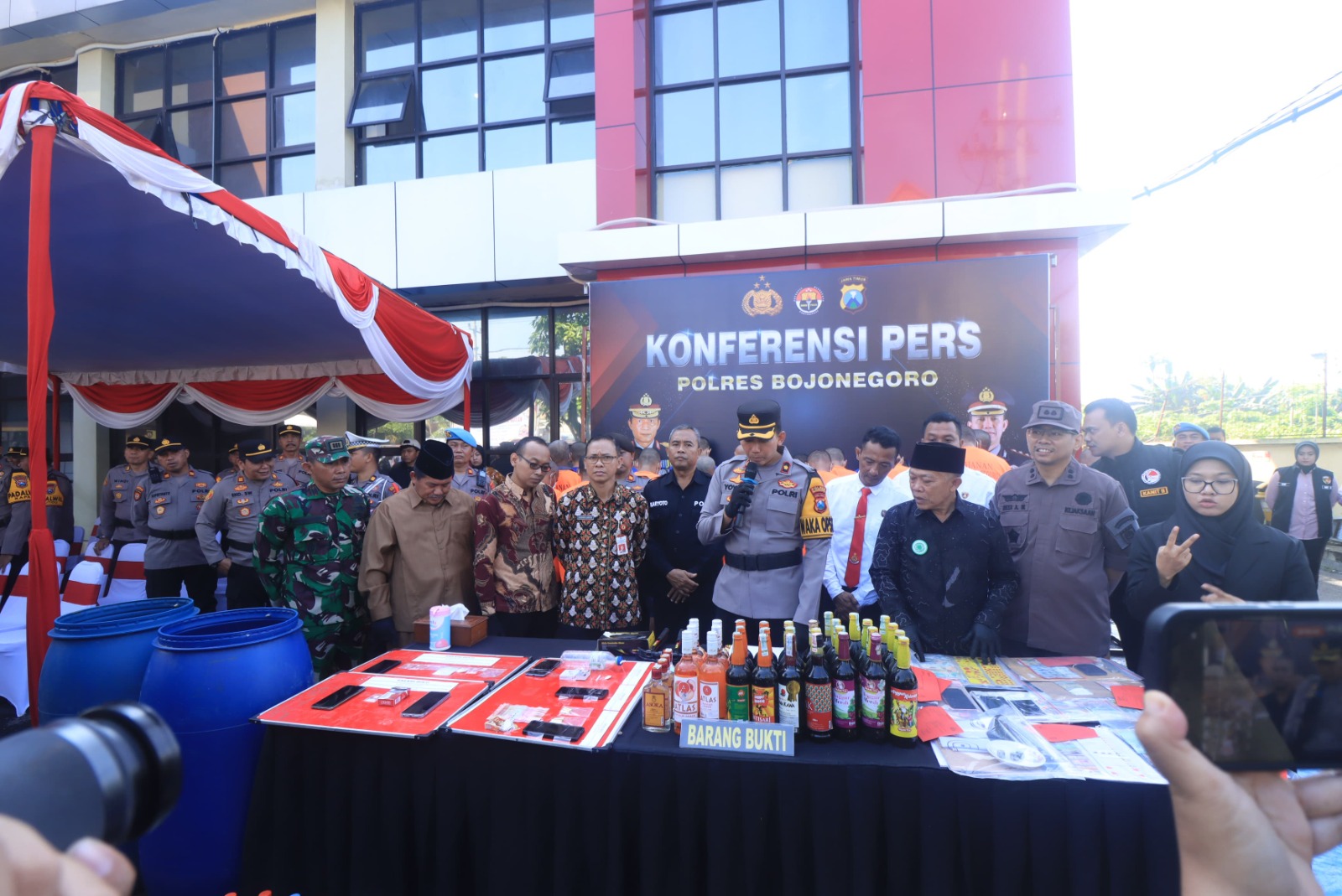 Dalam kesempatan tersebut, jajaran Forkopimda bersama tokoh agama secara simbolis melakukan pemusnahan barang bukti minuman keras (miras) hasil operasi yang telah dilakukan. Langkah ini menjadi bukti nyata komitmen Polres Bojonegoro dalam memberantas penyakit masyarakat yang meresahkan warga.