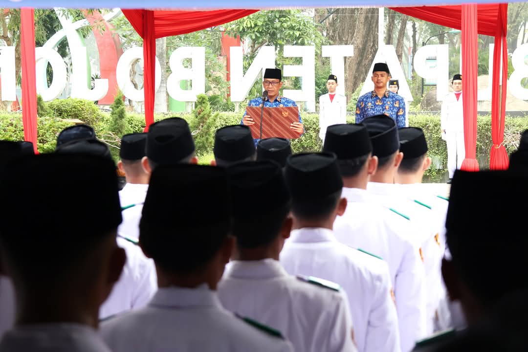 BOJONEGORO,Wartagres.com – Upacara peringatan Hari Lahirnya Pancasila digelar dengan khidmat di Halaman Pendopo Malowopati, (2/6). Bertindak sebagai Inspektur Upacara, Bapak Bupati Bojonegoro Setyo Wahono membacakan sambutan resmi dari Kepala Badan Pembinaan Ideologi Pancasila (BPIP). Sambutan itu disampaikan bahwa dalam pembangunan nasional saat ini, pemerintah telah menetapkan Asta Cita sebagai delapan agenda prioritas menuju Indonesia Emas 2045. Salah satu yang paling fundamental dalam Asta Cita tersebut adalah memperkokoh ideologi Pancasila, demokrasi dan hak asasi manusia. Oleh karena itu, melalui Asta Cita, kita dipanggil untuk melakukan revitalisasi nilai-nilai Pancasila dalam segala dimensi kehidupan.