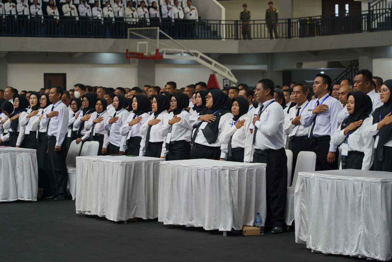 Sebanyak 2.494 orang PPPK serta 4 orang CPNS yang belum mengikuti pelantikan pada 30 April 2025 turut menjadi peserta kegiatan pembekalan ini. Kegiatan ini bertujuan untuk memberikan pemahaman serta menanamkan nilai integritas, profesionalisme, loyalitas, dan perilaku ASN yang beretika dan berorientasi pada pelayanan publik.