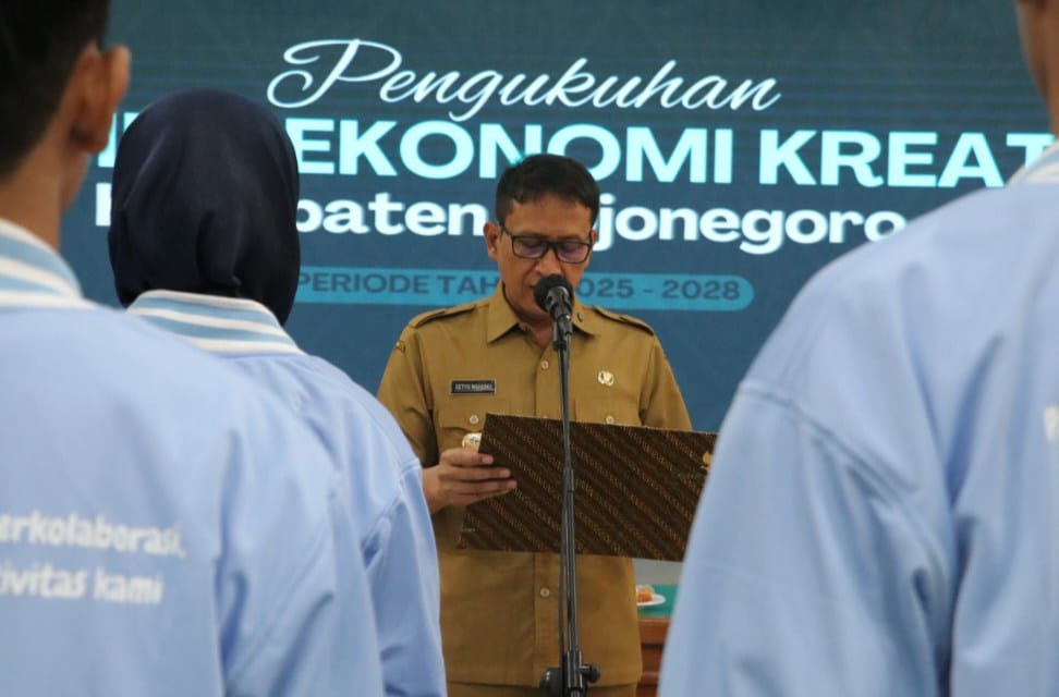 BOJONEGORO,Wartagres.com – Bupati Bojonegoro, Setyo Wahono, hari ini secara resmi membuka kegiatan Bimbingan Teknis (Bimtek) Ekonomi Kreatif Kabupaten Bojonegoro sekaligus mengukuhkan anggota Komite Ekonomi Kreatif (KEK) di Ruang Angling Dharmo, Pemkab Bojonegoro (13/10/25).