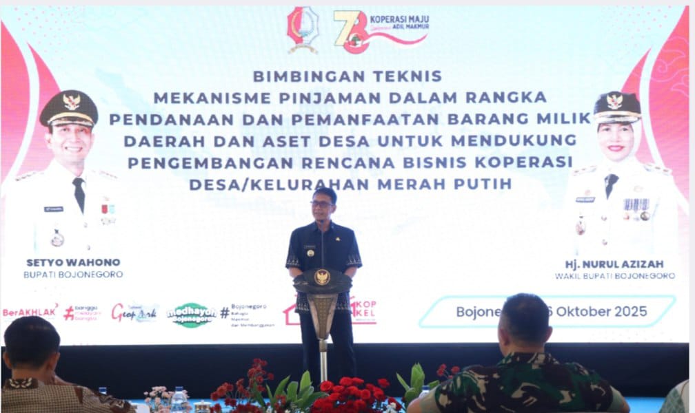 BOJONEGORO,Wartagres.com – Bojonegoro melalui Dinas Perdagangan, Koperasi, dan Usaha Mikro menyelenggarakan kegiatan Bimbingan Teknis (Bimtek) Mekanisme Pinjaman dalam Rangka Pendanaan dan Pemanfaatan Barang Milik Daerah serta Aset Desa untuk Mendukung Pengembangan Rencana Bisnis Koperasi Desa/Kelurahan Merah Putih, bertempat di Pendopo Malowopati, Pemkab Bojonegoro.