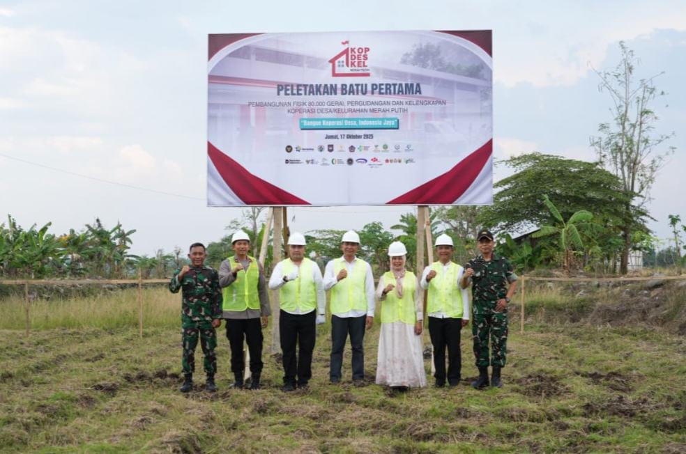 BOJONEGORO,Wartagres.com – Bupati Bojonegoro Setyo Wahono bersama Wakil Bupati Bojonegoro Nurul Azizah, dan Dandim 0813 Dedy Dwi Wijayanto melakukan peletakan batu pertama peresmian pembangunan gerai, pergudangan, dan kelengkapan Koperasi Desa/Kelurahan Merah Putih. Prosesi peletakkan batu pertama dilaksanakan di area Desa Ngraseh kecamatan Dander pada Jumat (17/10/25).